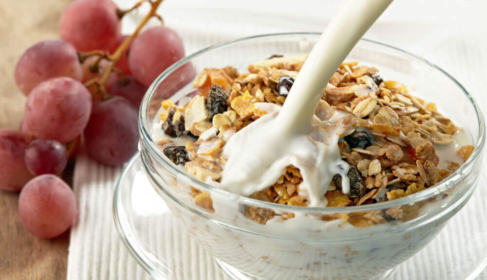 Müesli mit Milch ist ein Klassiker – perfekt als gesunder Snack für zwischendurch.
