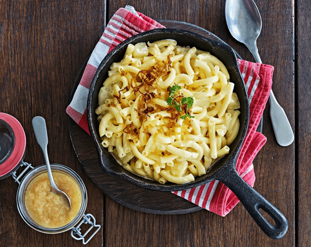Nudeln, Rahm, Käse und Apfelmus – was für eine Kombi! Mehr brauchen Gamer nicht.
